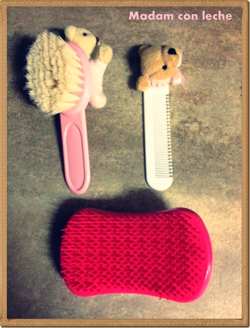 Y por último, esta el cepillo anti enredos (de abajo), que me lo regalaron hace un tiempo (se vende para adultos y todo tipo de pelo) y lo he usado en la niña y me ha encantado!, quita los enredos en un segundo y le puedo manejar bien el pelo, lo que ya no conseguía con el cepillo de bebé.